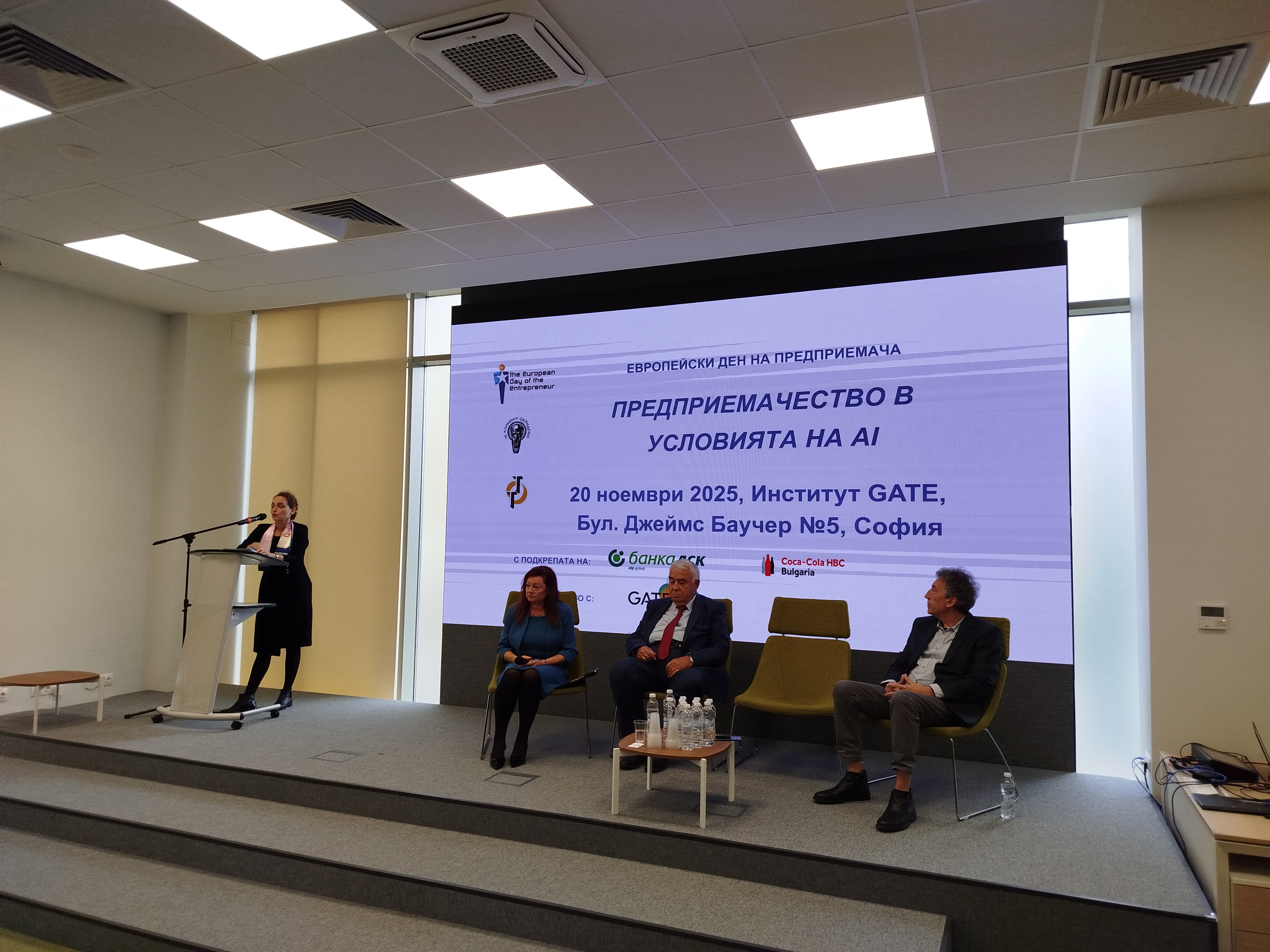 "Предприемачество в условията на AI" бе темата на 23-ото поред издание на форума Европейски ден на предприемача. Събитието бе организирано от Център за трансфер на технологии към Научноизследователския сектор на Софийския университет "Св. Климент Охридски" съвместно с Университетски център по предприемачество и проектно управление към Стопански факултет на Софийски университет "Св. Климент Охридски". Ежегодният форум за насърчаване на студентското и младежко предприемачеството в България се проведе на 20 ноември 2025 г. в голямата зала на Институт GATE в София с подкрепата на Банка ДСК и Кока Кола Хеленик ботълинг къмпани България.